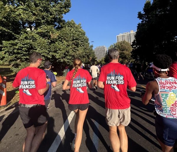 Chloe and her group also made preparations to convey the message of why they were running the marathon: They all wore red shirts that said “Run for François,” in her dad’s honor. “Even people in the crowd, like my mom and family friends, were also all wearing the shirts, and it was … a symbol for our running group and to show what we were running for,” Chloe said.